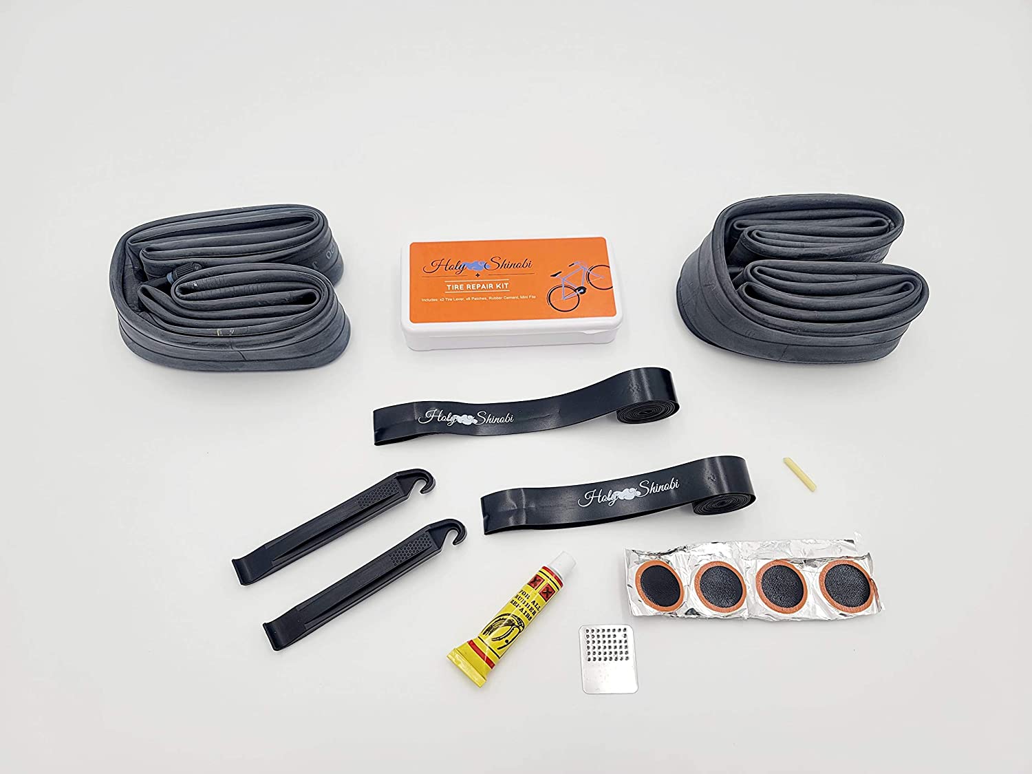 Includes: 2 Tires Size: 26″ x 2.125″ 2 Inner Tubes 2 Rim Strips 2 Hard Plastic Tire Levers 8 patches 1 rubber cement 1 mini file