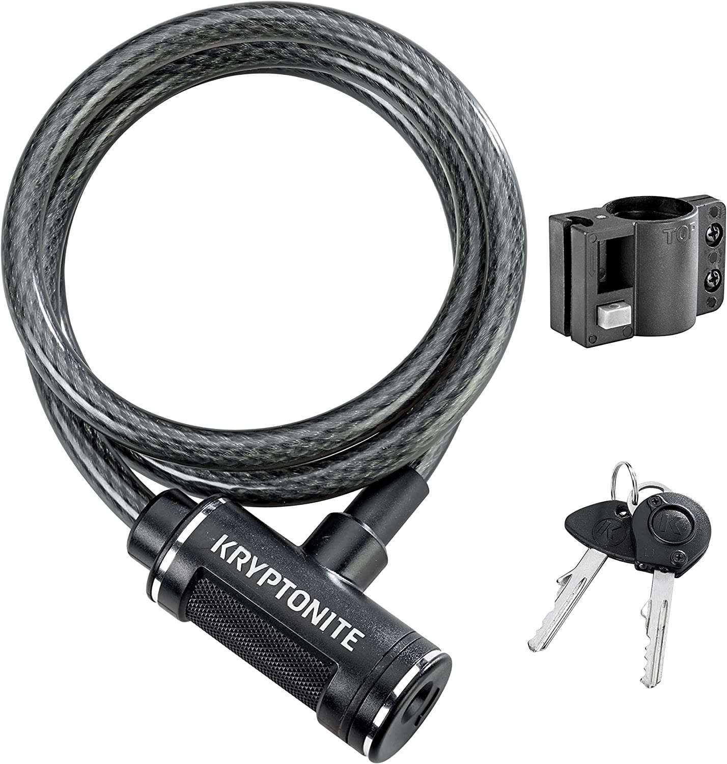 Kryptonite Bike Lock Cable, 6ft. x 12mm Braided Steel Cable Anti-Theft Security Bicycle Lock with Keys & Mounting Bracket for Scooter Road Mountain Bikes