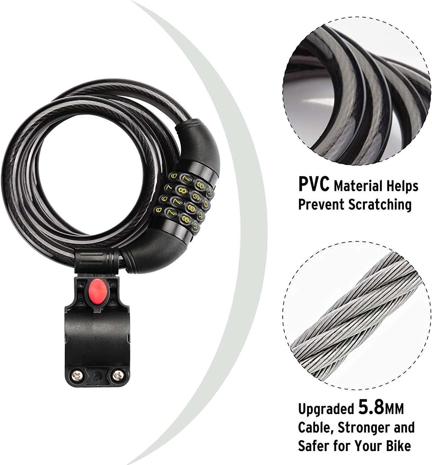 Titanker Bike Lock Cable, Kids Bike Cable Basic Self Coiling Combination Cable Bike Locks with Complimentary Mounting Bracket, 1/2 Inch Diameter